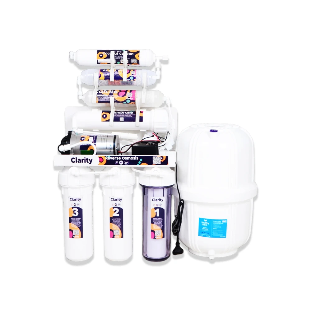 تقنية التناضح العكسي (RO) هي عملية تنقية المياه تعتمد على ضغط عالٍ لتمرير الماء عبر ممبرين نصف مسامية لإزالة الشوائب والمواد الضارة. وفي حالة فلتر كلاريتي الذي يعمل بتقنية التناضح العكسي، تتوفر العديد من الفوائد، ومن أبرزها: