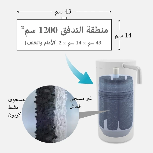 | مدة الاستخدام | تدوم لمدة عام كامل عند تنقية 30 لتر يوميًا |